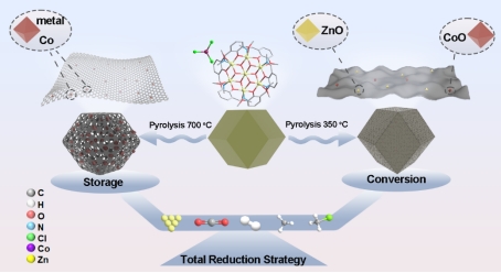 鉴于此,化学化工学院彭旭副教授与微电子学院李岳彬教授提出了一种全还原策略,通过在惰性气体热解诱导产生多种还原性气体,进而降低材料的价态;不仅如此,该过程发生了结构的演变,从而实现目标产物从电化学析氧到电化学储能的转变。