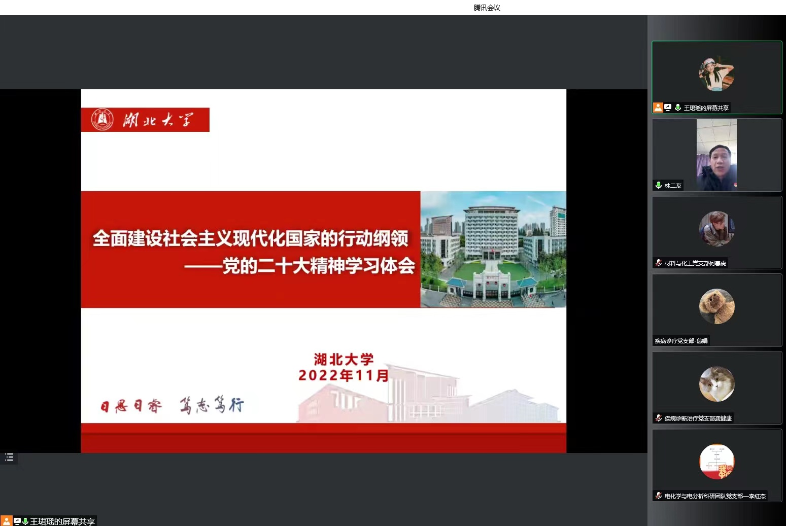 12日8日下午,学校学习宣传贯彻党的二十大精神宣讲团成员、校党委常委、副校长王世敏同志赴英国365集团官网D320会议室,开展党的二十大精神宣讲活动。此次宣讲会以线上、线下相结合的方式举行,化学化工学院、健康科学与工程学院、艺术学院党委委员和领导班子,创新创业、楚才学院领导班子和支部全体党员在D320会议室参会,四个学院其他教职工及学生支部委员线上参会,会议由化学化工学院党委书记林二友主持。